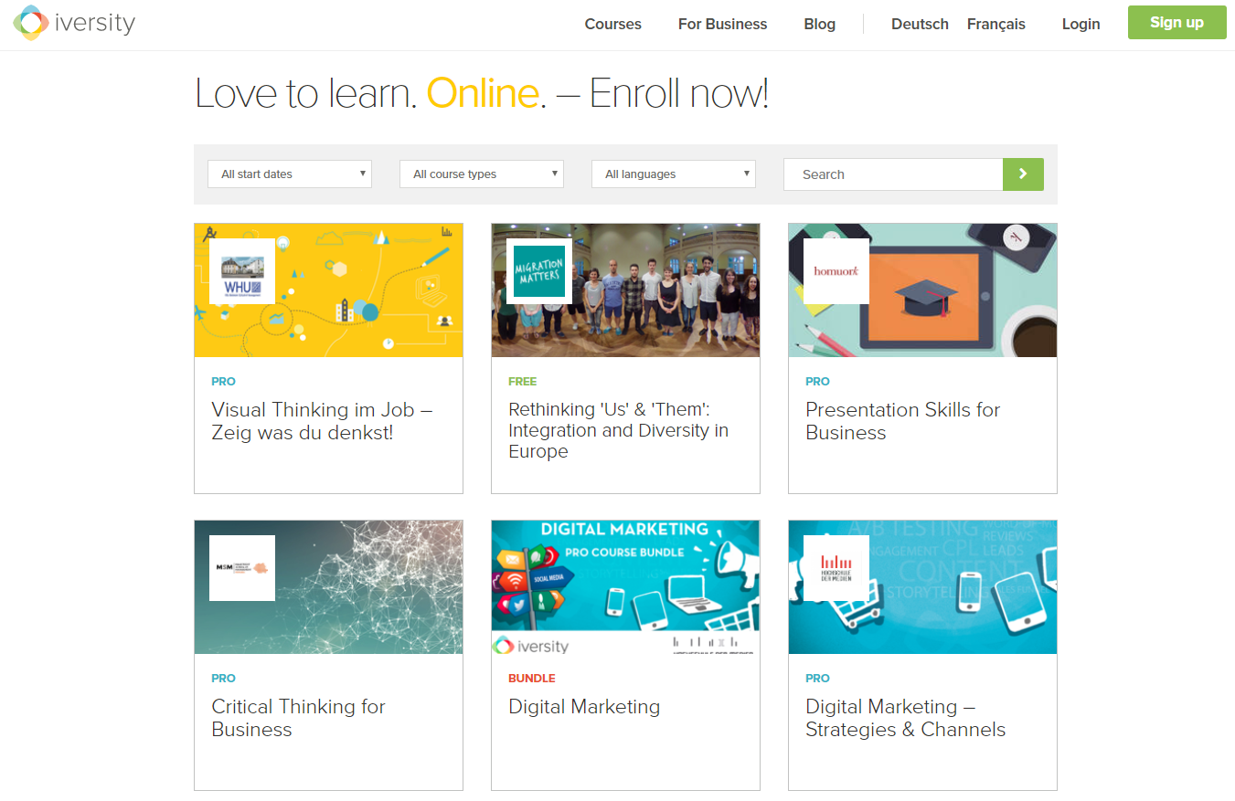 iversity算是欧洲版的Coursera。Coursera合作的主要是北美高校,iversity则位于柏林,合作的是欧洲高校,各有千秋。iversity提供的是免费高校公开课,有兴趣的同学可以去听听。不过不提供硕士学位的研修计划。