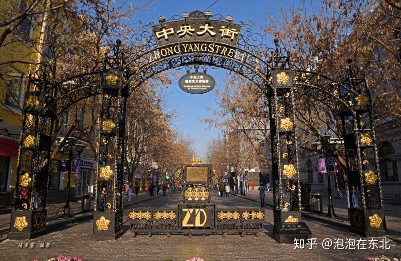 说是洋街,当然要有一段“洋的历史”,1898年哈尔滨开始大规模地修筑铁路和城市建设,来自关内及邻省的劳工大量涌入哈尔滨,原沿江地段是古河道,尽是荒凉低洼的草甸子,运送铁路器材的马车在泥泞中开出一条土道,这便是中央大街的雏形,于是中东铁路工程局将沿江荒地拔给散居哈尔滨的中国人,至1900年即形成“中国大街”意为中国人住的大街。在狭窄的街道两旁是阴沟,铺上木板,铁板,供人行走,在各十字路口架着木桥,走在这条大街上的是骡马驾驭的车子。晴天尘土飞扬,雨天泥泞不堪,由于埠头区的建立,这里俄人的铺子也多了起来,牌匾多用俄文,他们经营杂货修表等,所以虽称“中国大街”但两侧多为欧式建筑,商业也多为外国人经营犹如外国城市一般。