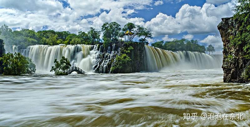 镜泊湖瀑布是让人震撼的,每当夏季洪水到来之时,镜泊湖水从四面八方漫来聚集在潭口,然后蓦然跌下,像无数白马奔腾,十分壮观。呼啸奔腾的湖水漫过平滑的熔岩床面,从断层峭壁上飞泻而下,在丰水期时形成宽达二三百米、落差二十多米的大瀑布,浮云堆雪的奇景让人看了就激动。拥抱洁白瀑布的是黑石潭,赭红色的熔岩将一条河流的急切烘托得无比惊心,那是水与火的妥协,那是冰冷与炽热的生命融合。