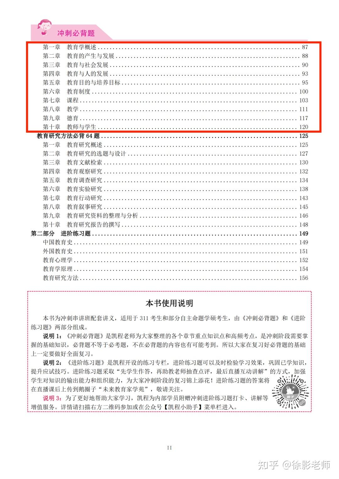 所以这门学科其实并不难,就是在讲教育是什么,为什么要进行教育,以及怎么样进行教育。大家可以对照目录,自己再回忆和梳理一遍教原框架建构的过程,加深自己的记忆。