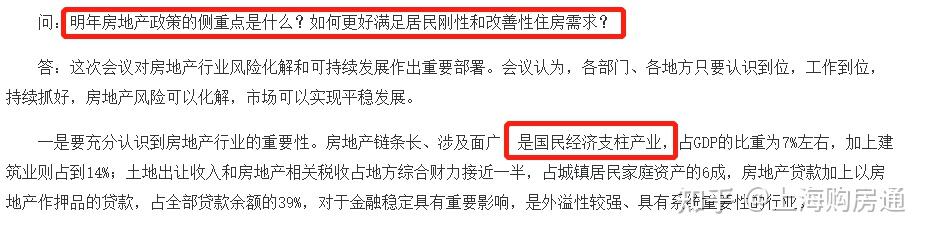 2022年12月19日,新华社发布《中央财办有关负责同志就中央经济工作会议精神和当前经济热点问题作深入解读》提到,明确:“房地产,国民经济支柱地位,占GDP比重7%左右”