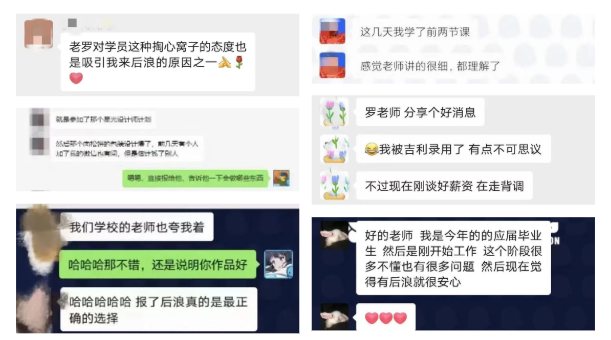 像这样温暖的瞬间还有很多很多,除了分享生活中的喜悦,学习上的困惑,很多学员也会向我们的老师反馈自己的成果:作品受到了喜爱、收到了大厂offer、还有赚到了人生的第一桶金......