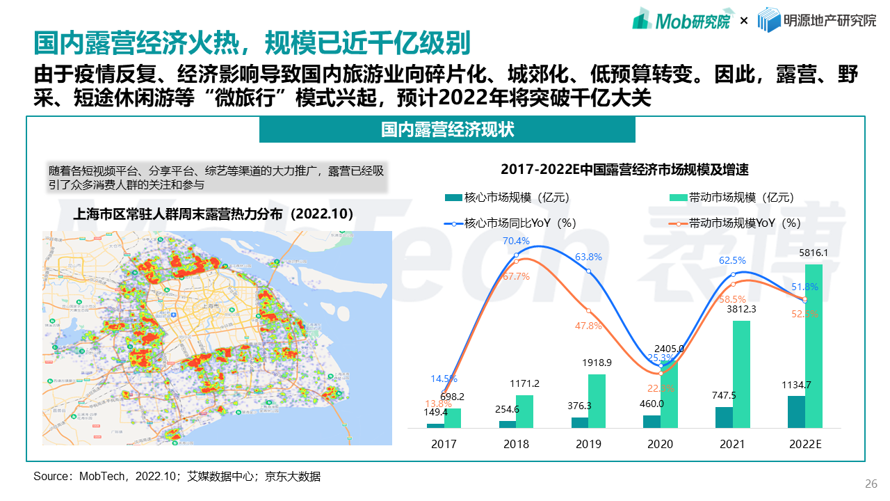由于疫情反复、经济影响导致国内旅游业向碎片化、城郊化、低预算转变。因此,露营、野采、短途休闲游等“微旅行”模式兴起,预计2022年会突破千亿大关。