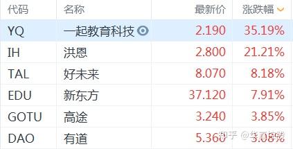 美股近期走出四连跌弱势局面,热门中概股涨跌不一,中概在线教育股则延续涨势,隔夜一起教育科技涨超35%,好未来涨逾8%,新东方涨近8%,高途涨近4%,其余多只教育股逆市收涨。