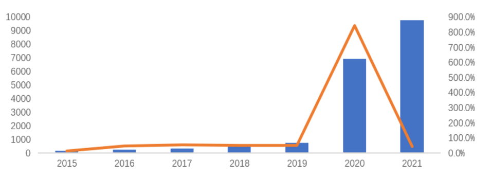 图2021年住房租赁企业成立年限在2015年-2021年间的分布