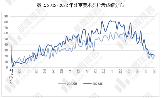 数据来源:2022-2023年北京高考美术类专业统一考试分数分布