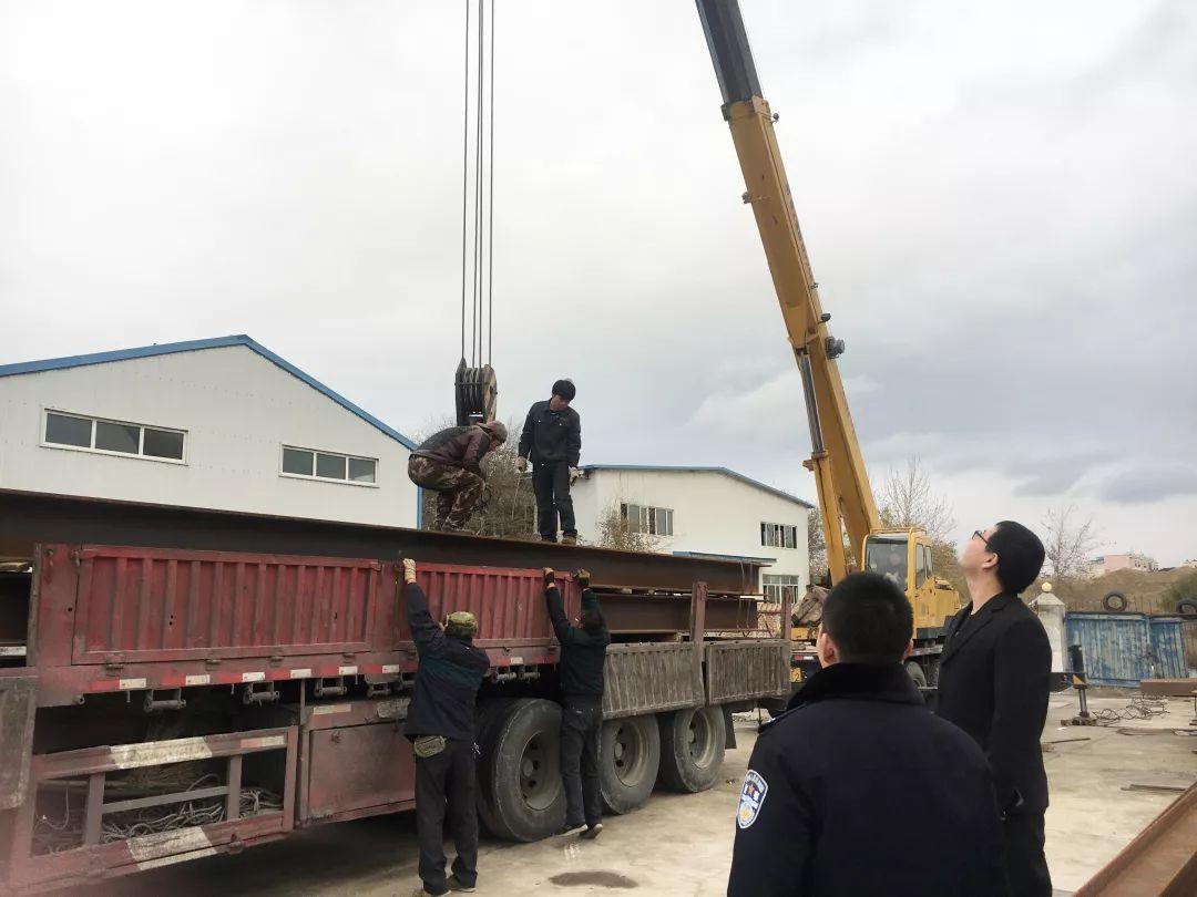 随后,执行干警责令申请人与协助义务人清点、核查扣押的钢材型号、数量等,并指挥待命在侧的数十辆吊车、货车及数十名装运工人进场,做好尽快扣押钢材的准备。