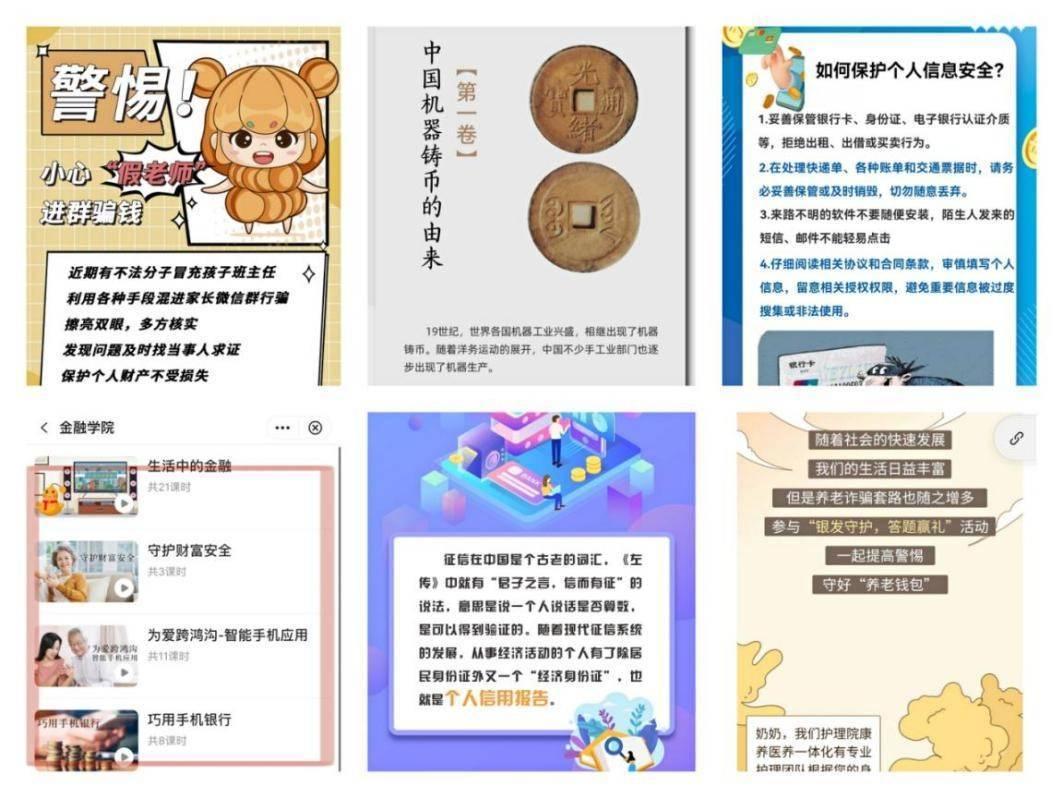 结合当前数字金融背景,中国银行天津市分行科学运用线上宣传手段提升宣教有效性,针对重点人群的实际金融需求,围绕个人信息保护、投资理财常识、新型诈骗手段、外汇市场基础知识、近代天津金融发展等宣传内容,设计制作了多个视频短片、动漫长图等宣传作品,通过浅显易懂的语言、寓教于乐的方式普及宣传金融知识、加强金融风险提示;同时针对老年群体开展“银发守护,答题赢礼”消保知识答题活动,并持续加大手机银行“银发专区”宣传力度,借助中银老年大学课程普及金融知识,提供特色化老年专属权益。