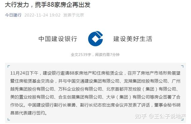 同日,建设银行邀请88家房地产和住房租赁企业,召开了房地产市场形势展望暨住房租赁基金交流会,并与8家房企签署了合作协议。