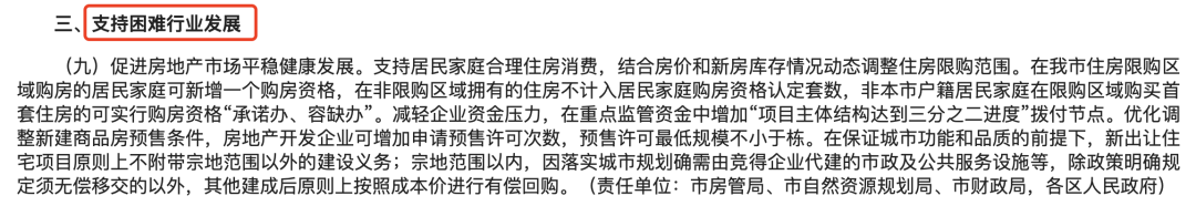 2月6日,武汉发布16条稳经济措施(下称16条),房地产行业被归为“困难行业”。其中提到,为减轻企业资金压力,在重点监管资金中增加“项目主体结构达到三分之二进度”拨付节点;优化调整新建商品房预售条件,房地产开发企业可增加申请预售许可次数,预售许可最低规模不小于栋等。