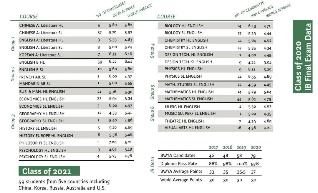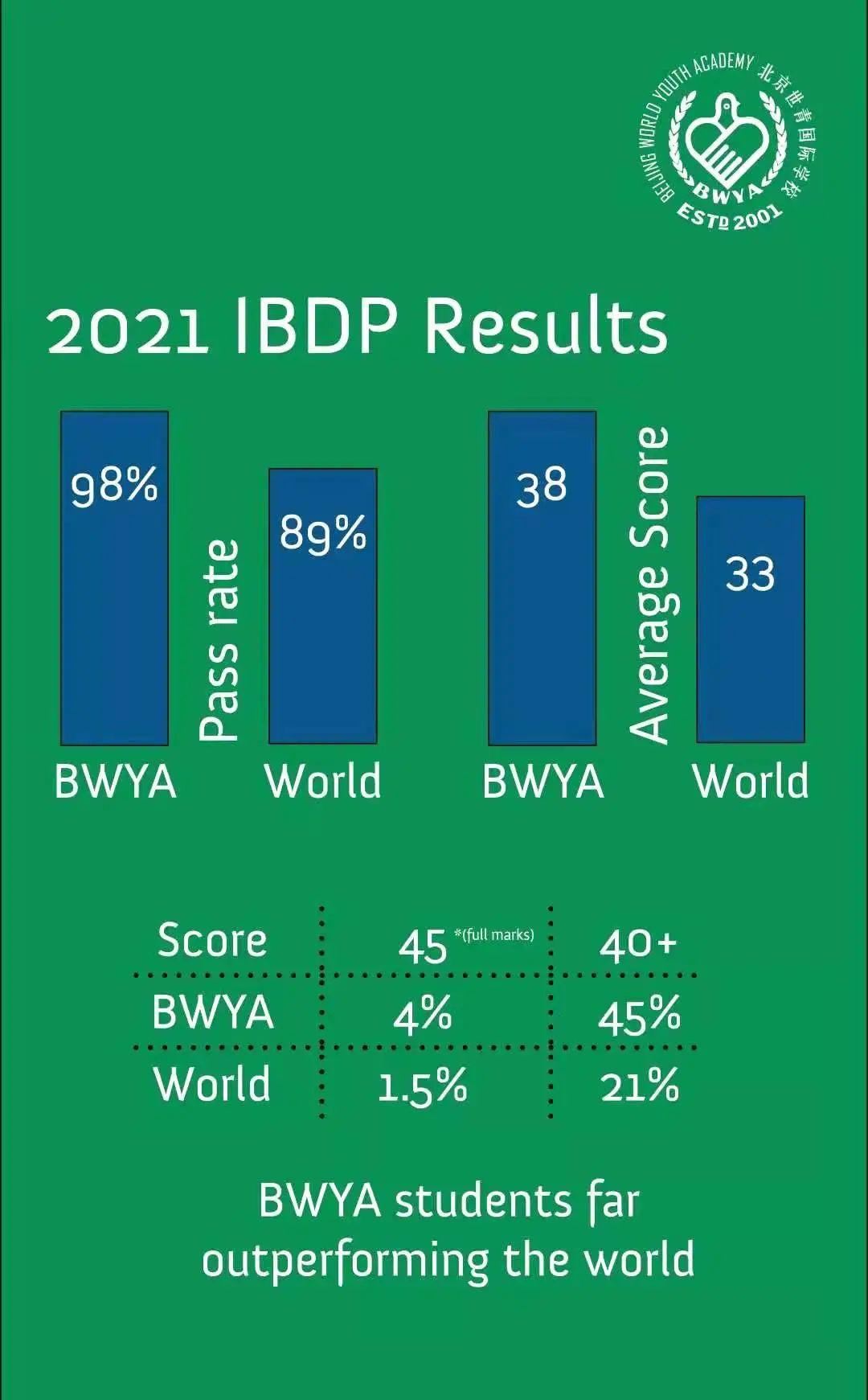 (以上为北京世青国际学校2017-2021年IBDP大考成绩分布)