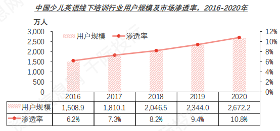图 中国少儿英语线下培训行业用户规模及市场渗透率