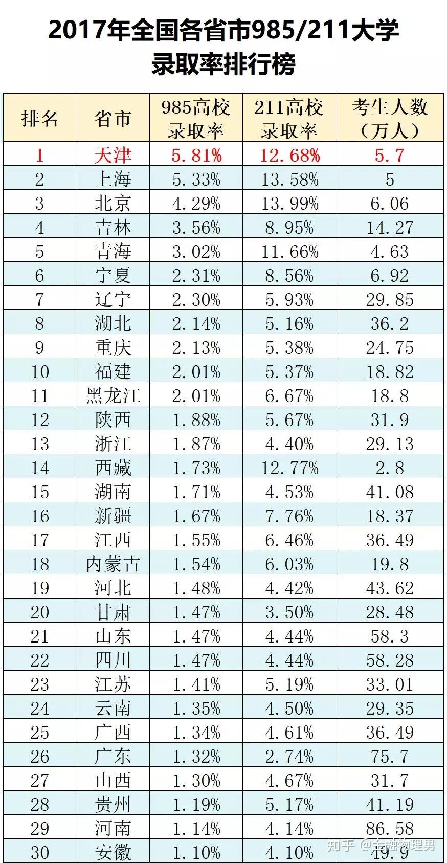 由于这些高校在北京的招生计划相对较少,最终2017年985高校录取率比天津还低了1.5%。也就是说去年进入985高校的天津考生比北京还多了五百人!