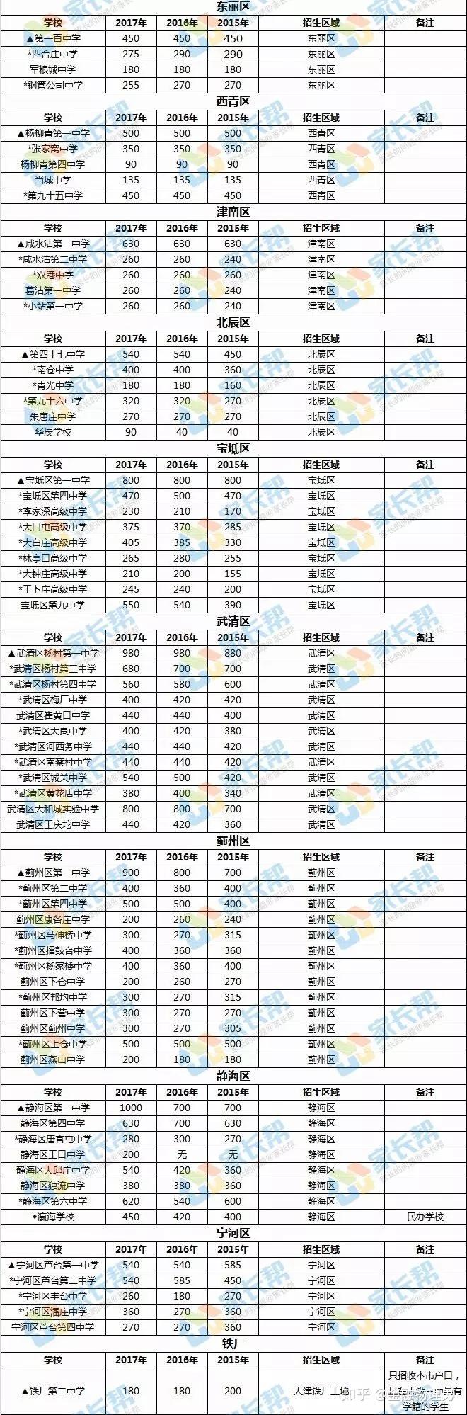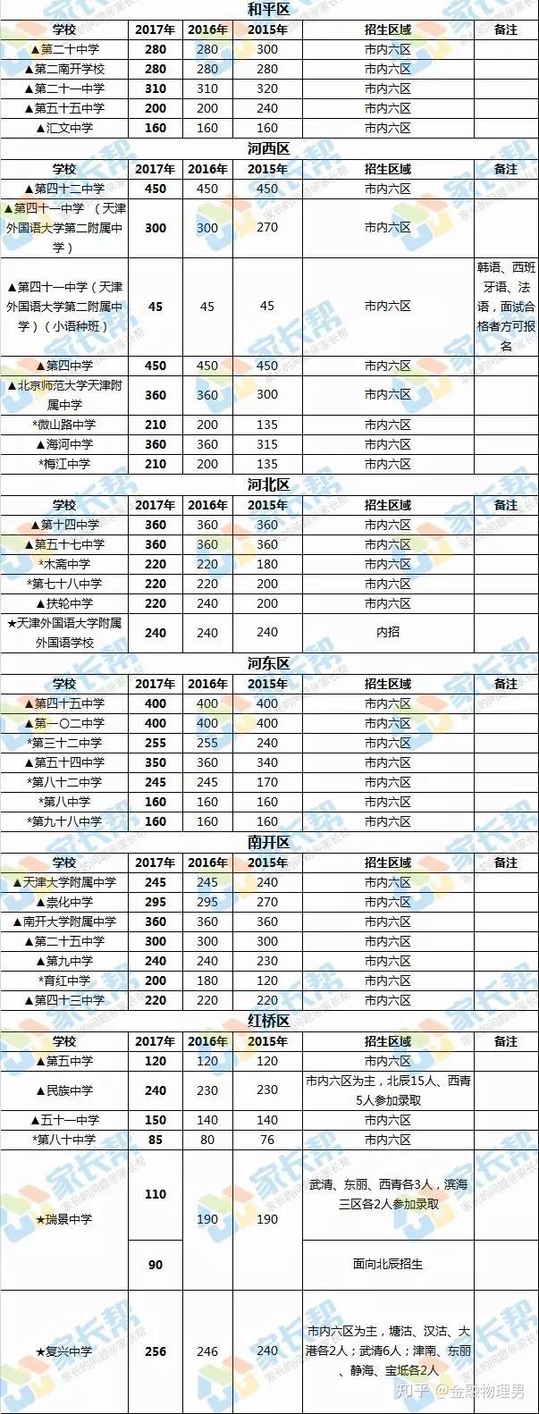 (转自家长帮天津站,"★"为市教委直属重点中学,"▲"为区县属市级重点中学,"*"为区级重点中学。)