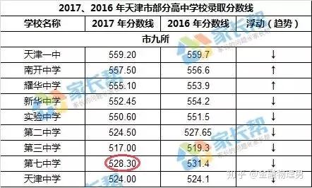 后四所学校中,2017年最高录取成绩是七中的528.3分,这个成绩还不如和平、河西、南开三个区的很多区属重点学校的录取分数高。