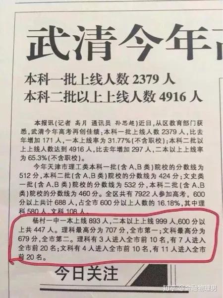 从具体的高中以及各个区的教育水平来看,“市五所”杨村一中以及其所在的和平区南开区河西区武清区目前处在相对领先的地位。