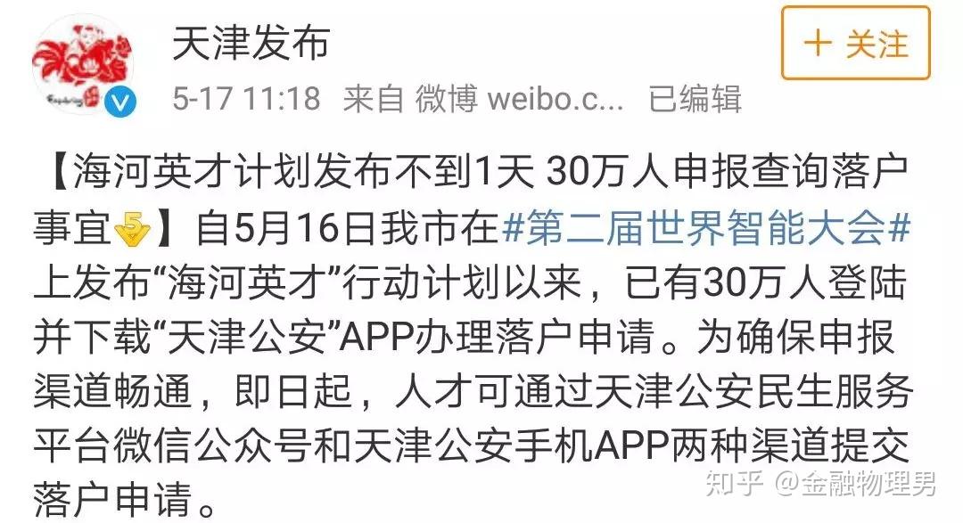 (节选自澎湃新闻:“天津:人才新政发布6天落户5800余人,政策不会朝令夕改”)