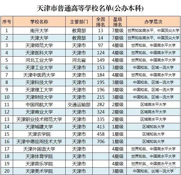 最后附上天津市全部公办本科高校名单:(依据教育部公布的截至2017年5月31日全国高等学校名单以及艾瑞深中国校友会网编写的《2018中国大学评价研究报告—中国高考志愿填报指南(校友会版)》)