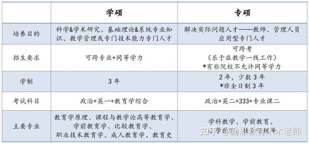这里我列出了教育学专硕与学硕的对比,可供大家作为参考