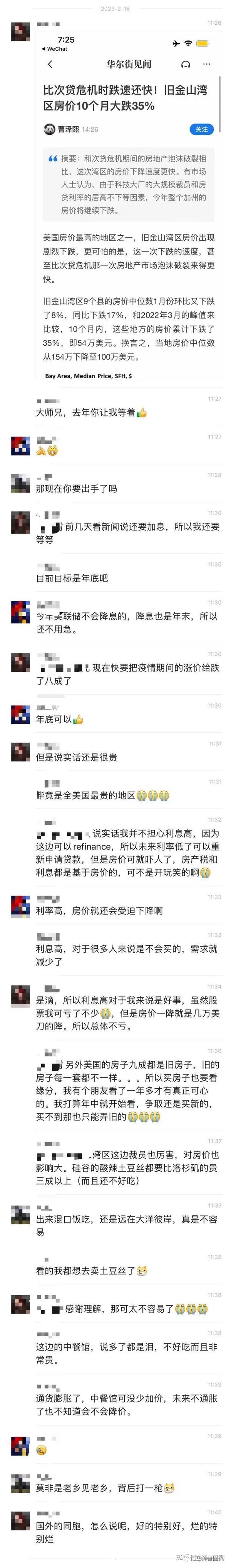 最近有个热点新闻,说的是美国硅谷房价大跌。一位美国朋友去年听了我的建议等一等,目前所在旧金山房价也因为加息缩表、经济下滑、公司裁员等因素下降很多了。以下为ViP群的聊天记录。
